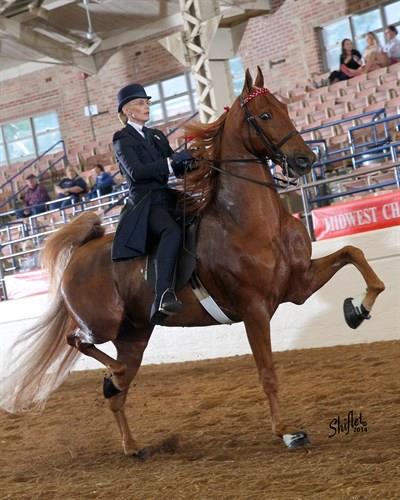 Macadamia and Steve Wheeler winning the 2014 3 Gaited World's Grand Championship at the KSF.
